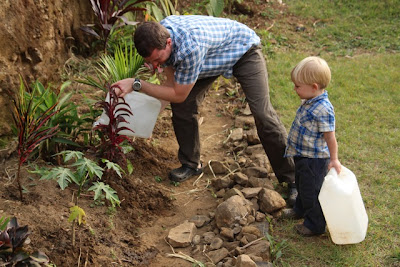 Despite no rain, we have been able to water our plants due to the hard work of Thom Shotanus. He is the missionary engineer and general contractor at Mbingo. Many of you know that last year we ran out of water for most of a month at the end of dry season. Thom assures us that the improvements he has made to the water supply will allow us to even water our plants throughout the dry season. This is currently one of Isaac's favorite activities.